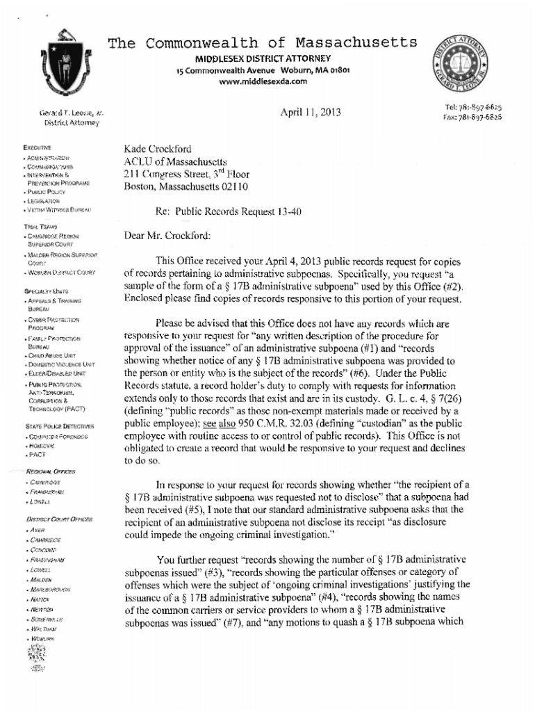 Get the free Gerard T. Leone, Jr., District Attorney 15 Commonwealth ...