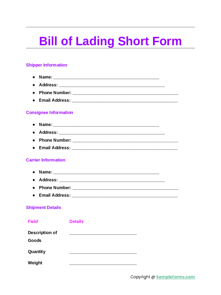 A well-structured Bill of Lading template comprises essential components that ensure all relevant details are captured accurately. Understanding these elements is crucial for anyone in the logistics or transport services sector.