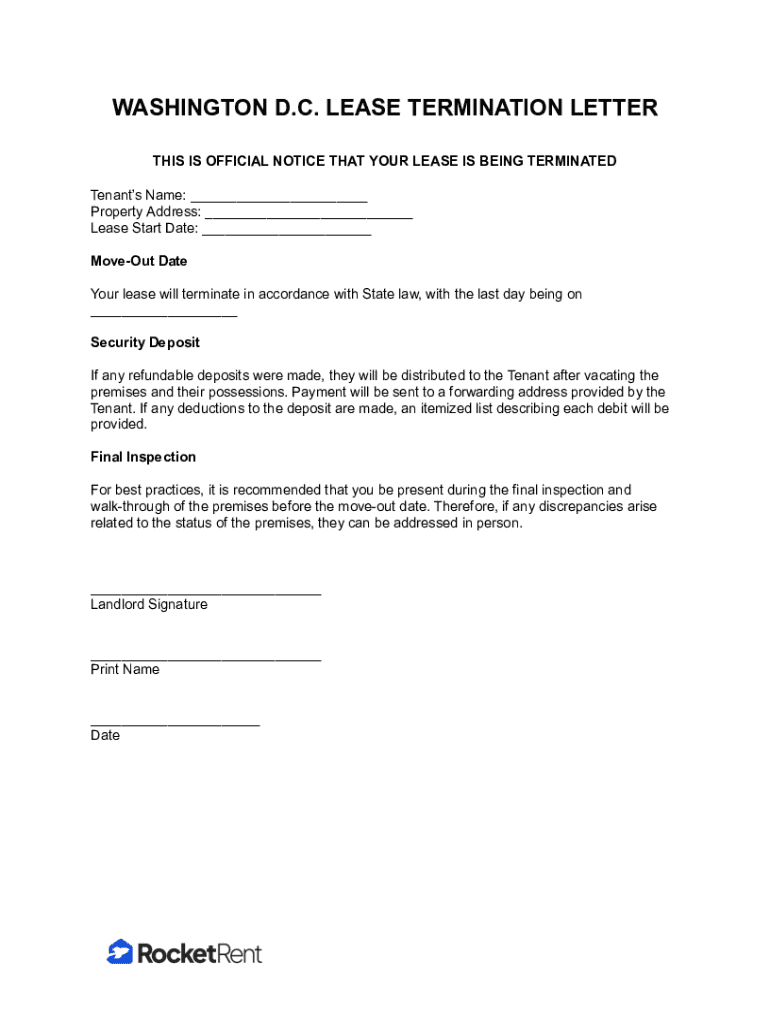 Issuing a lease termination notice in Washington, DC comes with specific legal requirements. It’s crucial to ensure the notice complies with regulations to avoid any potential disputes.