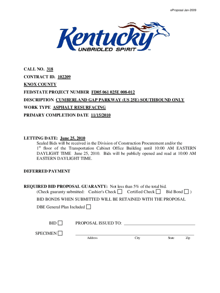 Get the free CALL NO. 318 CONTRACT ID. 102209 KNOX COUNTY ... - transportation ky