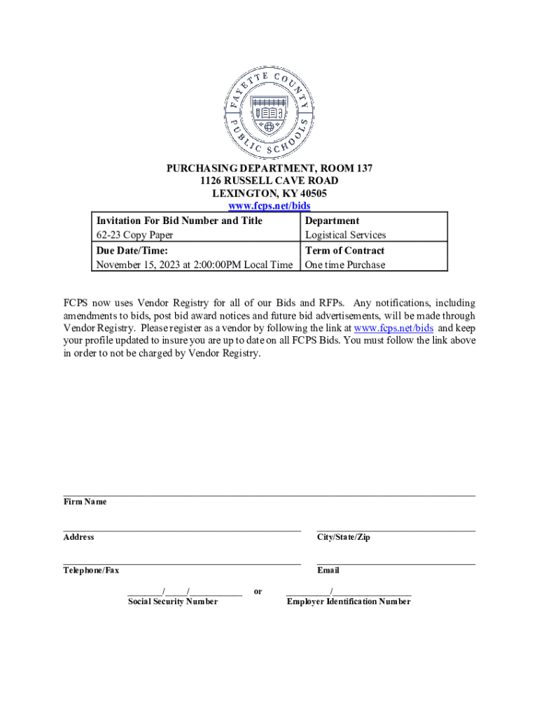 Get the free Invitation For Bid Number and Title