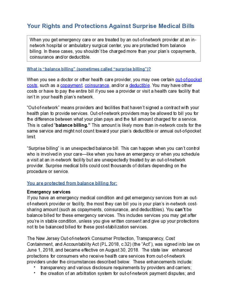 Your Rights and Protections Against Surprise Medical Bills When you get emergency care or are treated by an outofnetwork provider at an innetwork hospital or ambulatory surgical center, you are protected