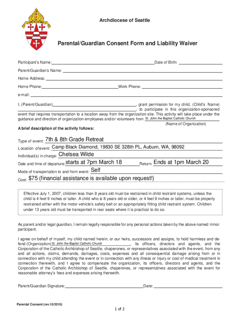 Get the free Parental/Guardian Consent Form and Liability Waiver for ...