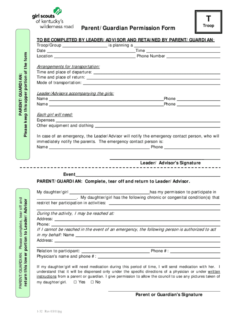 Get the free Caregiver Permission Form for Girl Scout Activities
