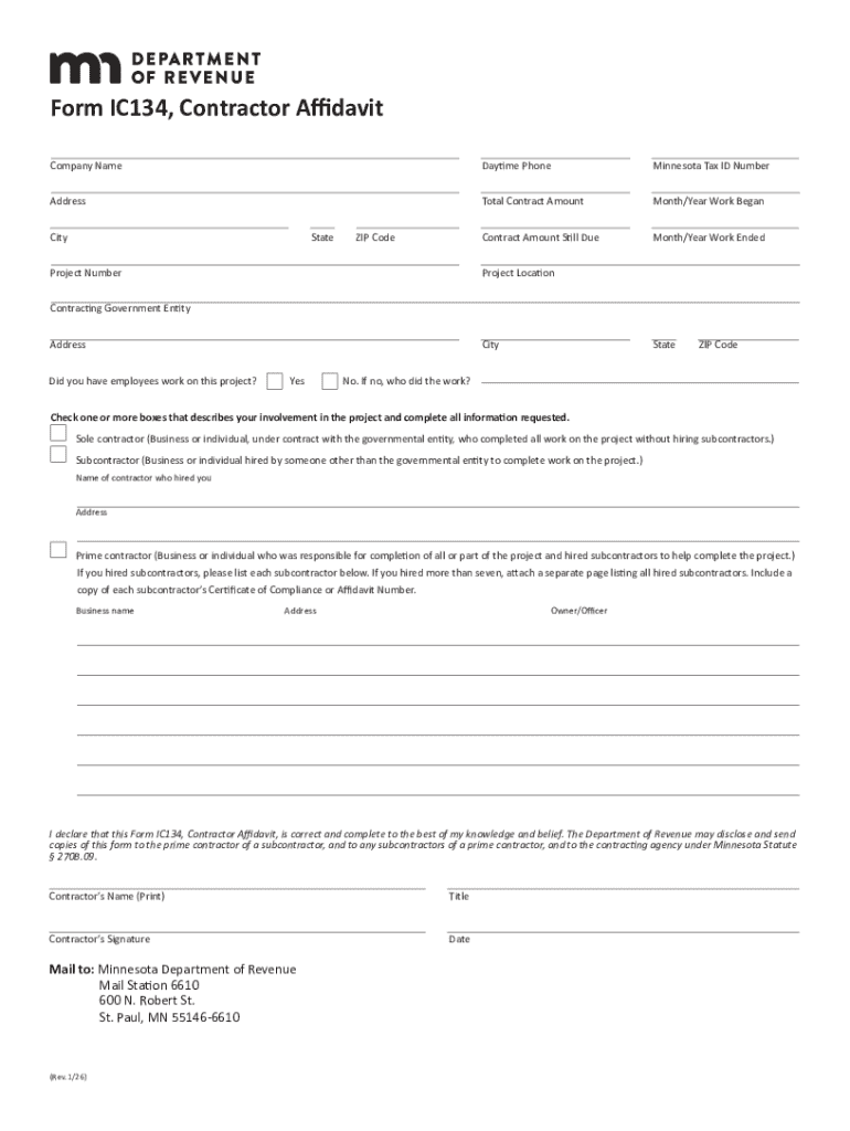 Get the free Contractors Withholding Affidavits and Form IC-134 - CDS