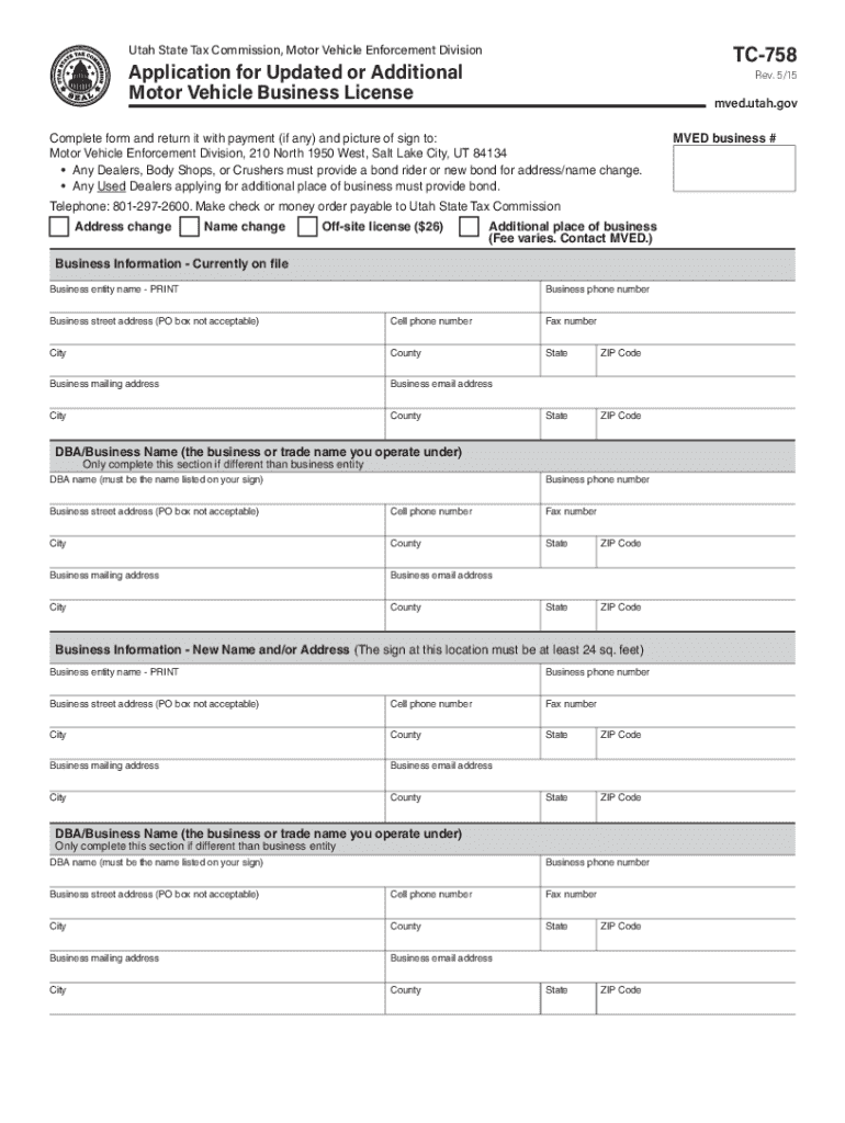 Get the free TC-758 Application for Updated or Additional Motor Vehicle Business License. Forms &...