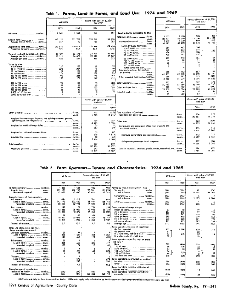 Farms, Land in Farms, and Land Use:Table 1.Farms wilh sales of $2,500All farmsAll farm\' ___ number __1974 and 196919741969197419691 3691 548946901acres __201 133 147232 707 150170 261 180183 228