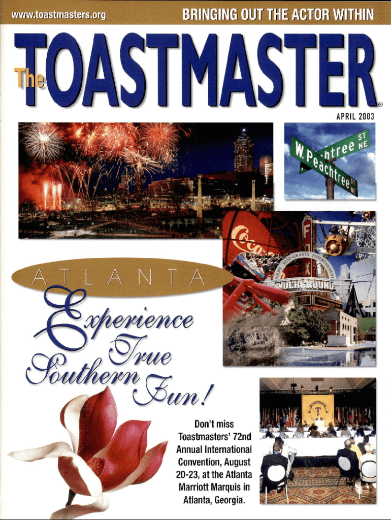 www.toastmasters.orgBRINGING OUT THE ACTOR WITHINDASTHASTER APRIL 2003IXmA\';A KAidt li]I/ mi. .4T I JtDon\'t miss Toastmasters\' 72nd Annual InternationalConvention, August 2023, at the AtlantaMarriott