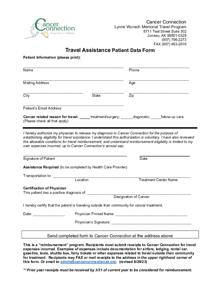 There are many common queries related to travel assistance patient data forms. For instance, potential applicants often want to know what types of documentation are required to accompany the form and how to determine eligibility for travel assistance programs.