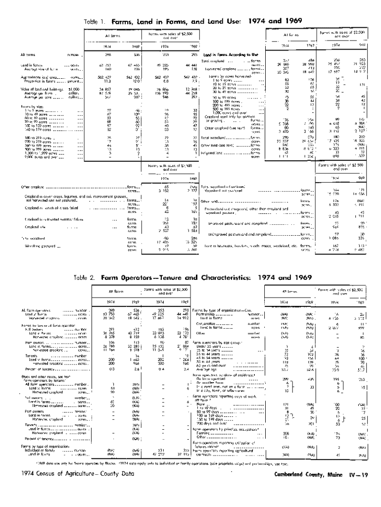 Farms, Land in Farms, and Land Use:Table 1.Forms with sales of $2,500 and overAll formsAll forms______ number __1974 and 1969197419691974196939853625329363 753 16067465 12649 225 19544 441 152Approximate