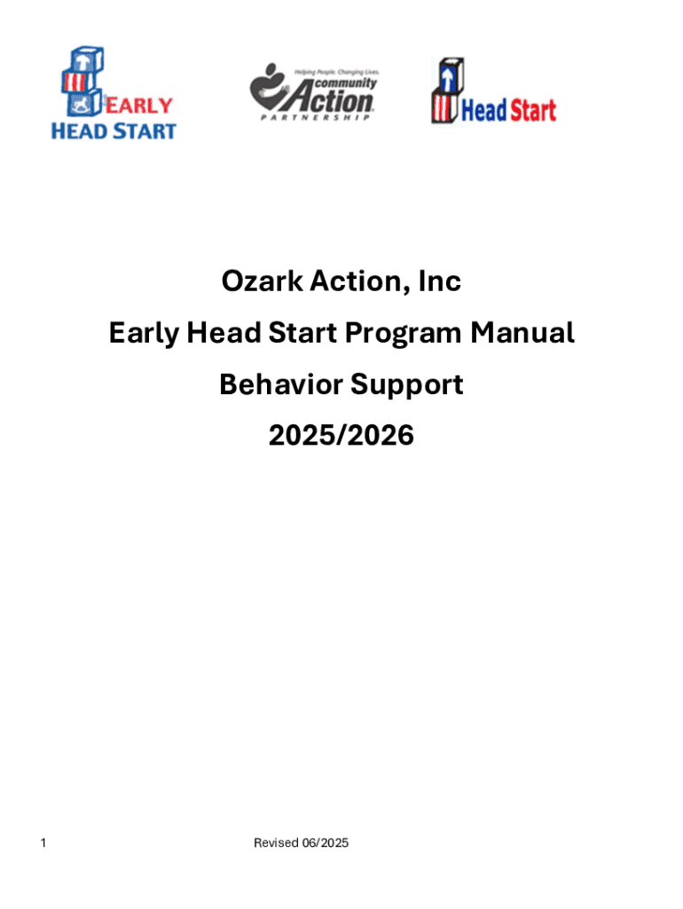 Comprehensive Guide to the Behavior Intervention Manual - Early Head Start Form