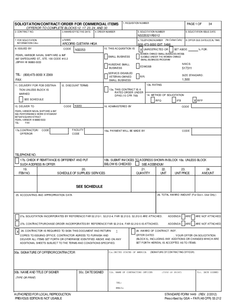 SOLICITATION/CONTRACT/ORDER FOR COMMERCIAL ITEMS1. REQUISITION NUMBERPAGE 1 OF34OFFEROR TO COMPLETE BLOCKS 12, 17, 23, 24, AND 30 2. CONTRACT NO.3. AWARD/EFFECTIVE DATE5. SOLICITATION NUMBER4. ORDER