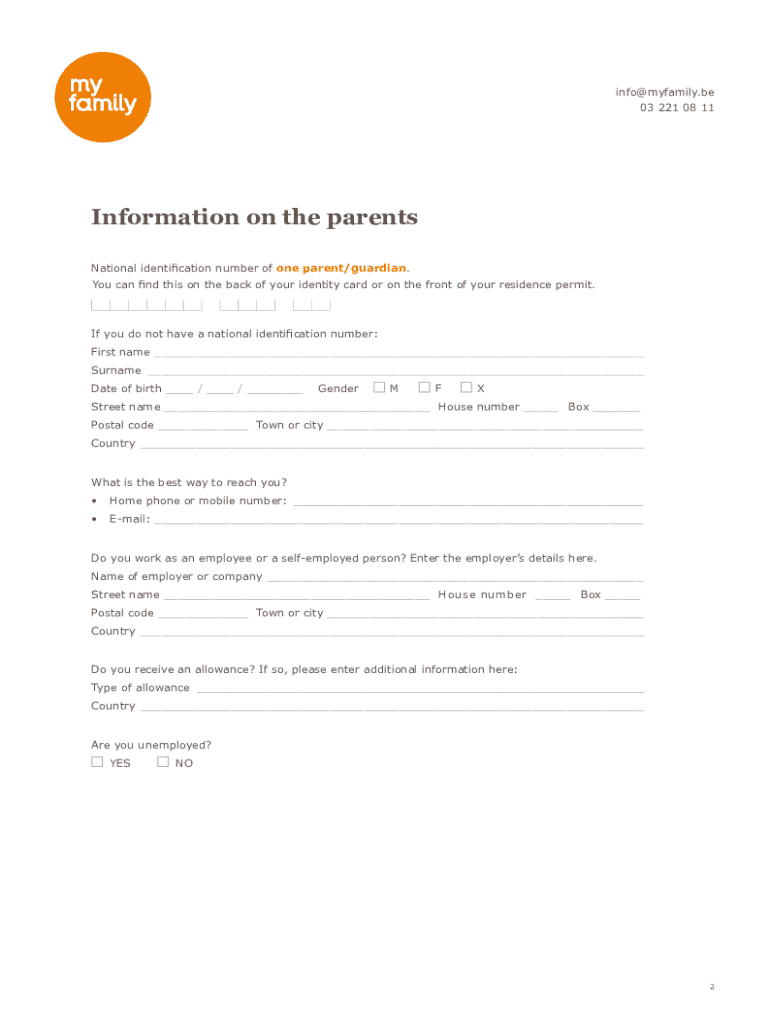 The first parent or guardian must provide their full name, relationship to the child, contact information, and employment details. This information helps institutions to establish a point of contact for communication.