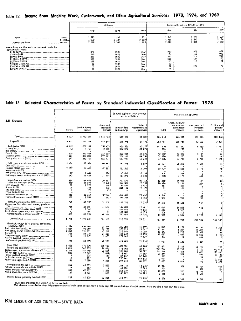 TobIe 12.1978, 1974, and 1969Income From Machine Work, Customwork, and Other Agricultural Services:Farms with soles of $2,500 or moreAll forms197819741969197819741969I 792 4 890 2 729I 535 5447 3