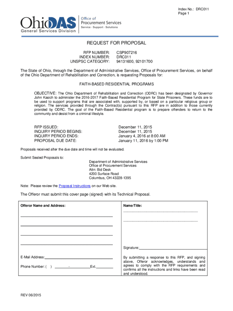 Get the free of the Ohio Department of Rehabilitation and Correction, is requesting Proposals for: