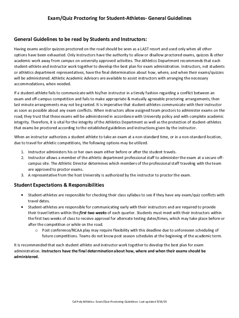 Get the free Exam/Quiz Proctoring for Student-Athletes- General Guidelines