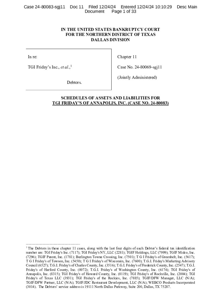 Get the free TGI Friday's Inc., et al.,1 De - Stretto