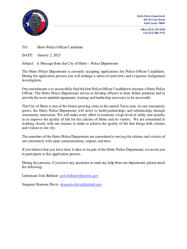 Get the free Minimum Qualifications for Applicants - Police Department