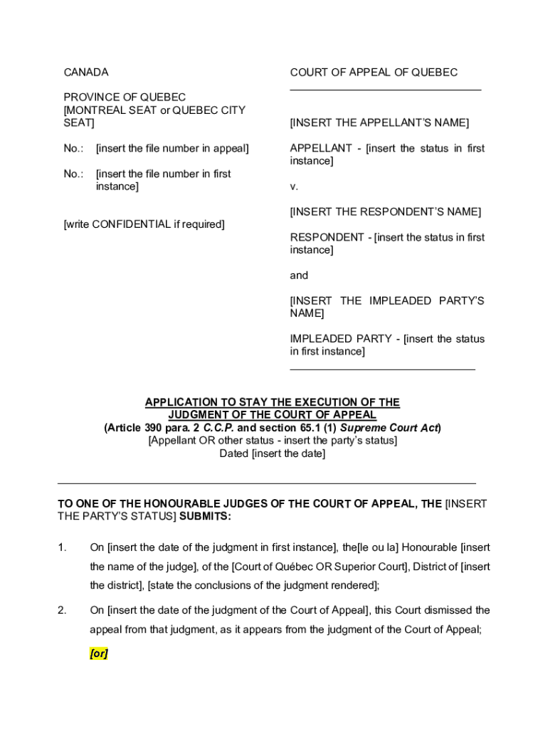 Get the free Regulation of the Court of Appeal of Quebec in Civil Matters