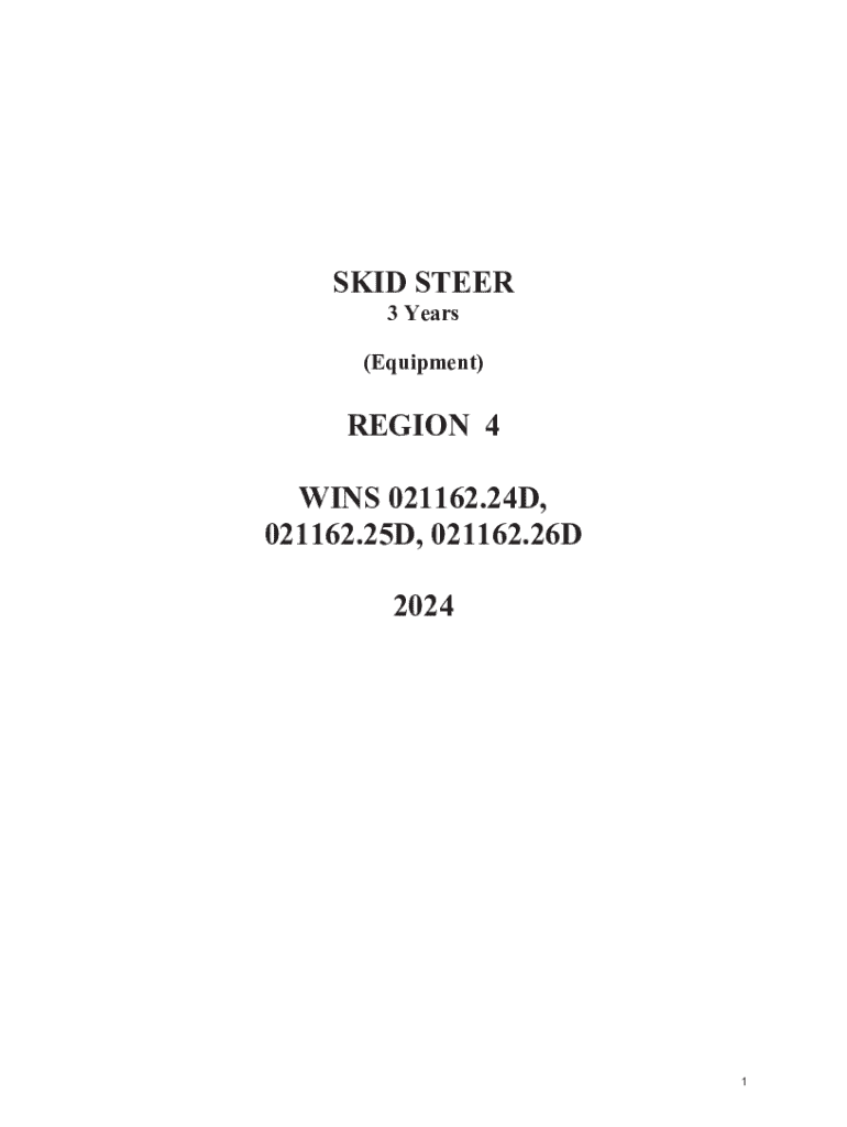 SKID STEER 3 Years (Equipment)REGION 4 WINS 021162.24D, 021162.25D, 021162.26D 20241Updated05/15/2020STATE PROJECT MAINTENANCE & OPERATIONS2BIDDING INSTRUCTIONS 1. Use pen and ink to complete all