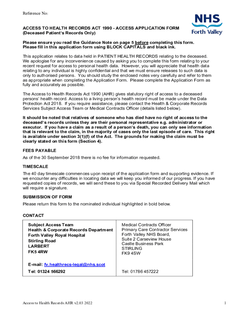 Get the free Application form for access to Health Records where the ...