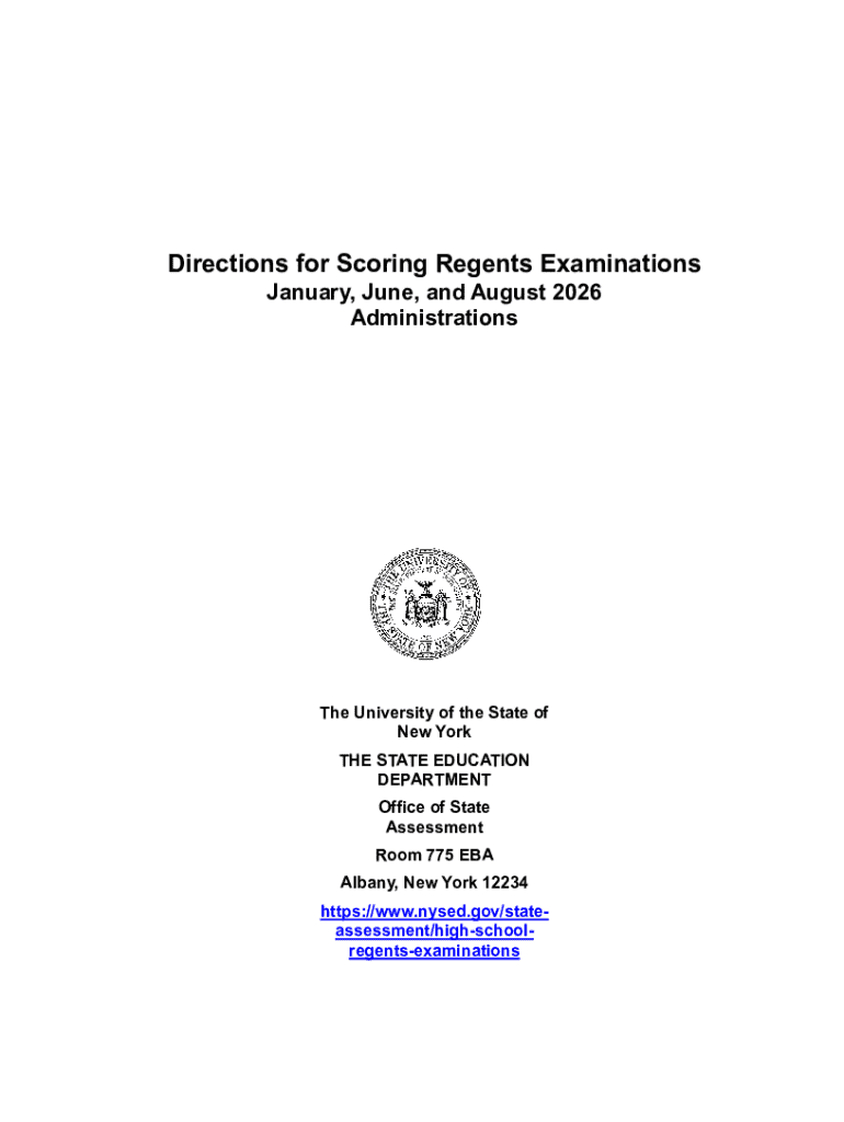 Directions for Scoring Regents Examinations January, June, and August 2026 AdministrationsThe University of the State of New York THE STATE EDUCATION DEPARTMENT Office of State Assessment Room 775