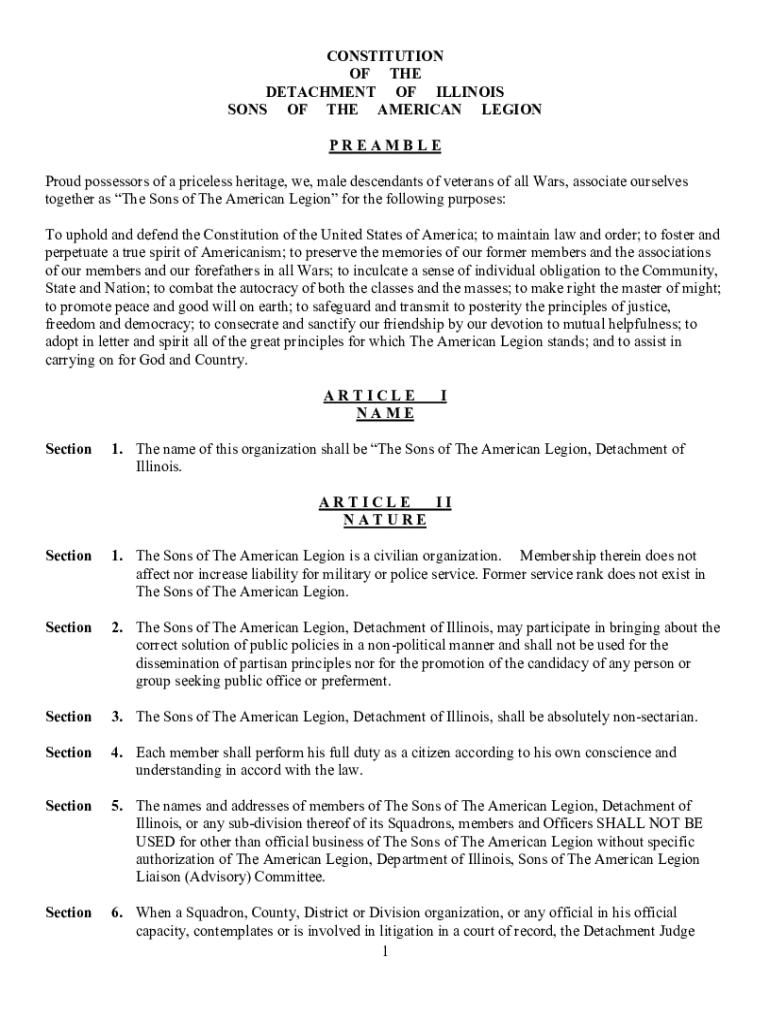 Get the free CONSTITUTION OF THE DETACHMENT OF ILLINOIS SONS OF ...