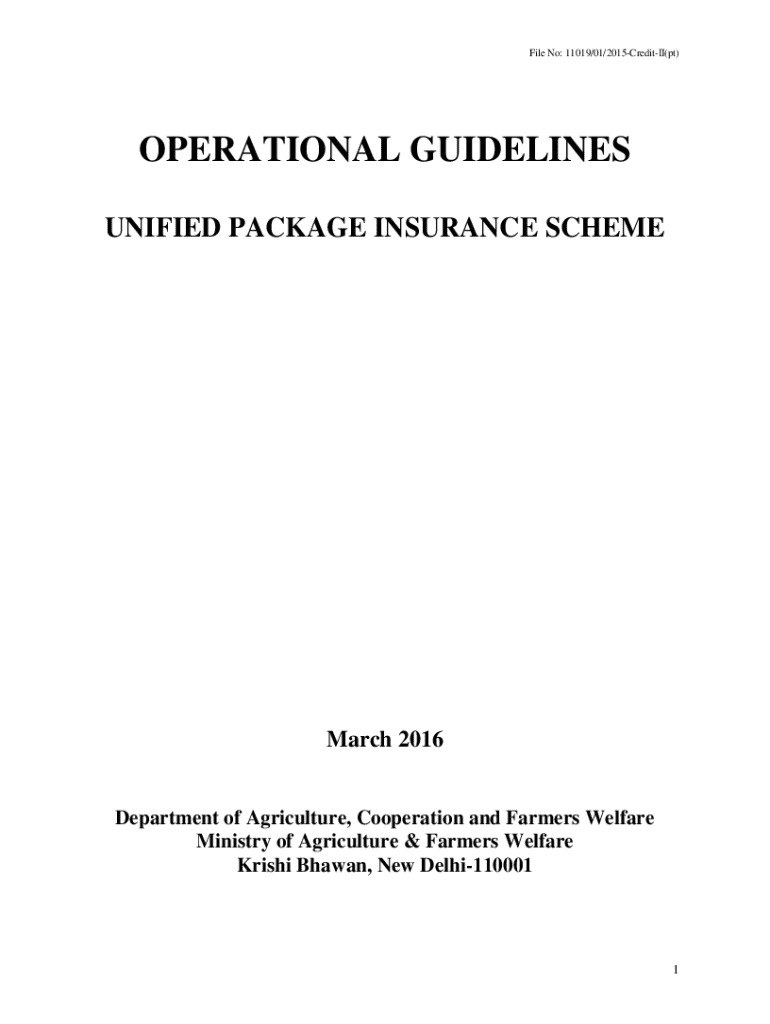 File No: 11019/01/2015CreditII(pt)OPERATIONAL GUIDELINES UNIFIED PACKAGE INSURANCE SCHEMEMarch 2016Department of Agriculture, Cooperation and Farmers Welfare Ministry of Agriculture & Farmers Welfare