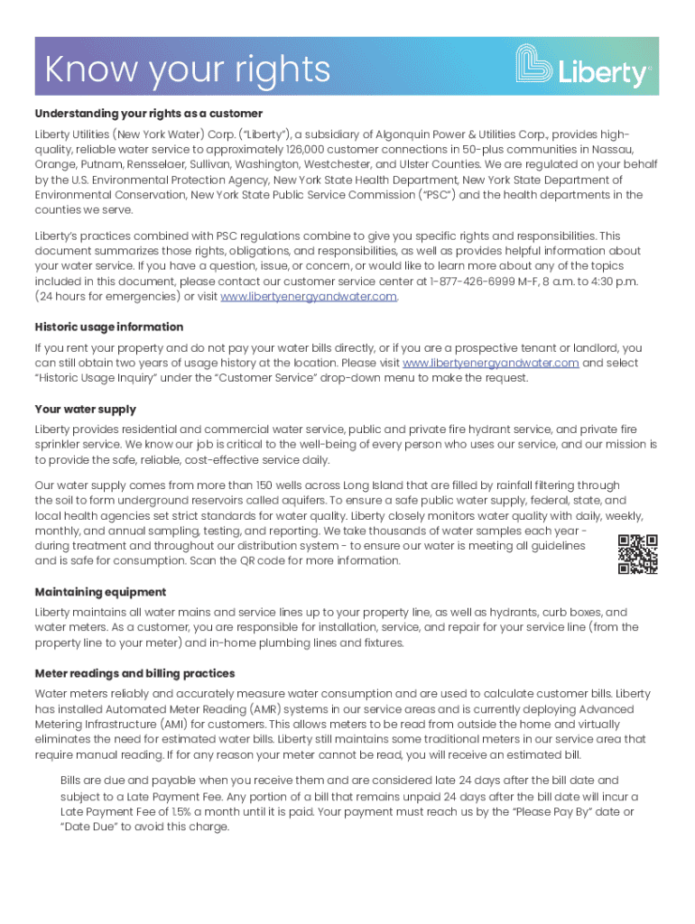 The Liberty Utilities Eastern Water Form serves as an essential document for customers wishing to initiate or modify their water service with Liberty Utilities. This form outlines the necessary steps needed to establish a water account, whether you're a new resident or looking to adjust your service options.