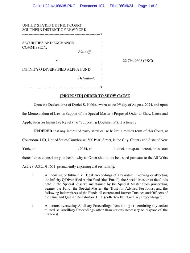 Submitting and managing the Infinity Q Diversified Alpha Form