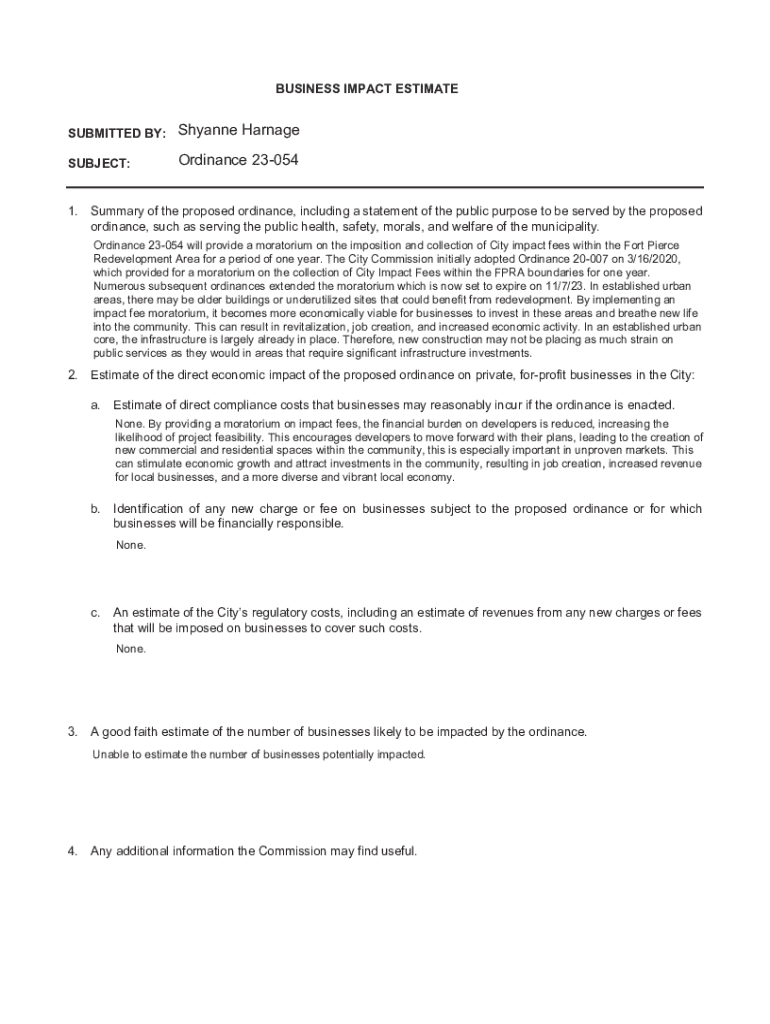 Get the free City of Port St. Lucie Business Impact Estimate Form