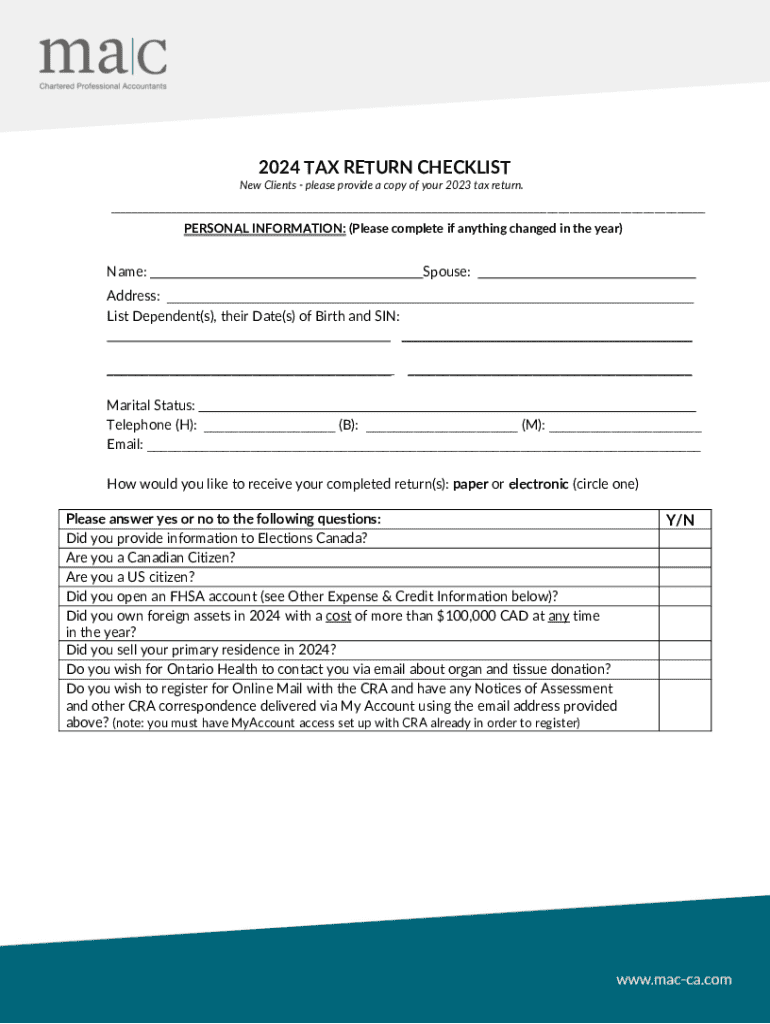 2024 Tax Return Checklist Form: Your Comprehensive Guide