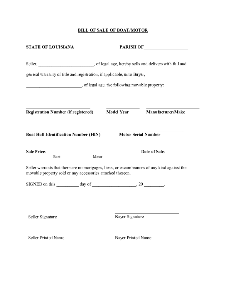 Get the free Louisiana Bill of Sale of Boat/MotorFill and sign with Lumin