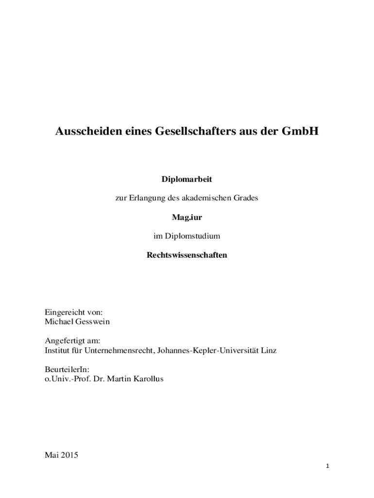 Holen Sie sich kostenlos Ausscheiden eines Gesellschafters aus der GmbH