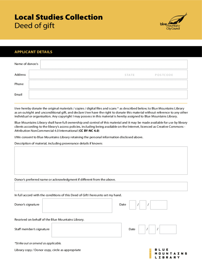 Overview of the deed of gift form