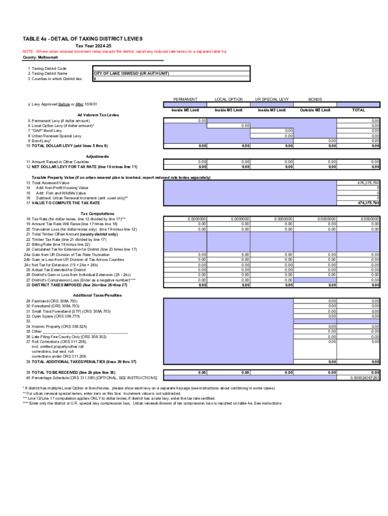 Get the free SAL Table 4A - Detail of Taxing District Levies (Excel ...