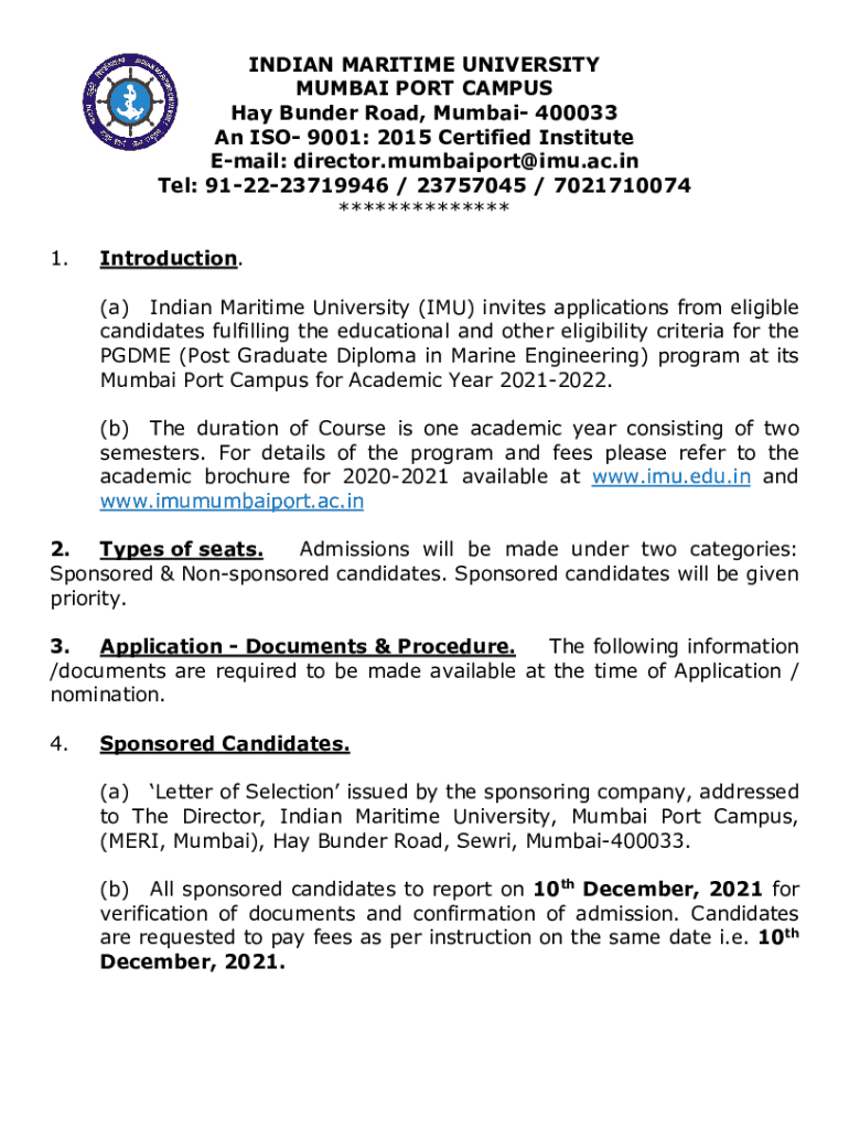 Fill out your indian maritime university mumbai online with pdfFiller!