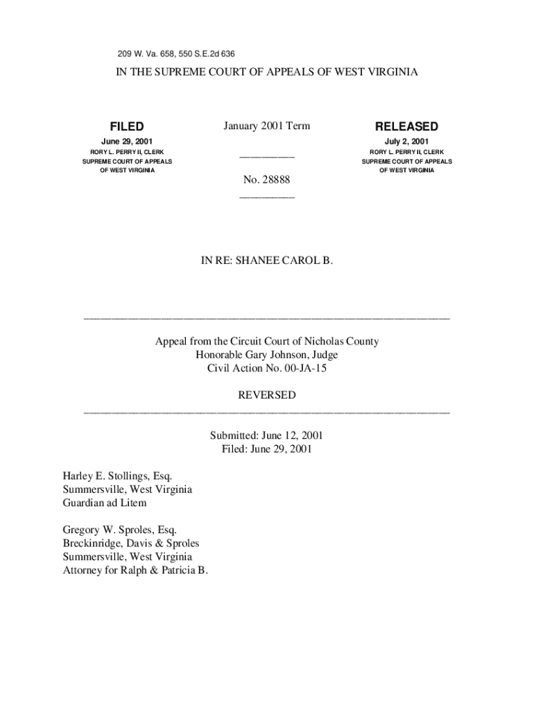 209 W. Va. 658, 550 S.E.2d 636IN THE SUPREME COURT OF APPEALS OF WEST VIRGINIAFILEDJanuary 2001 TermRELEASED___RORY L. PERRY II, CLERK SUPREME COURT OF APPEALS OF WEST VIRGINIAJune 29, 2001July 2,