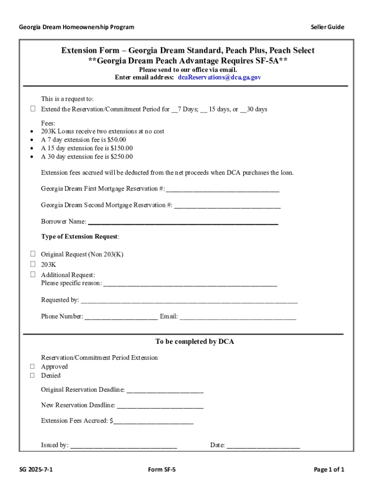 Get the free Extension Form Georgia Dream Standard, Peach Plus, Peach ...