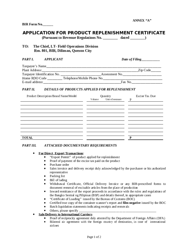 APPLICATION FOR PRODUCT REPLENISHMENT CERTIFICATE word template: frequently asked questions