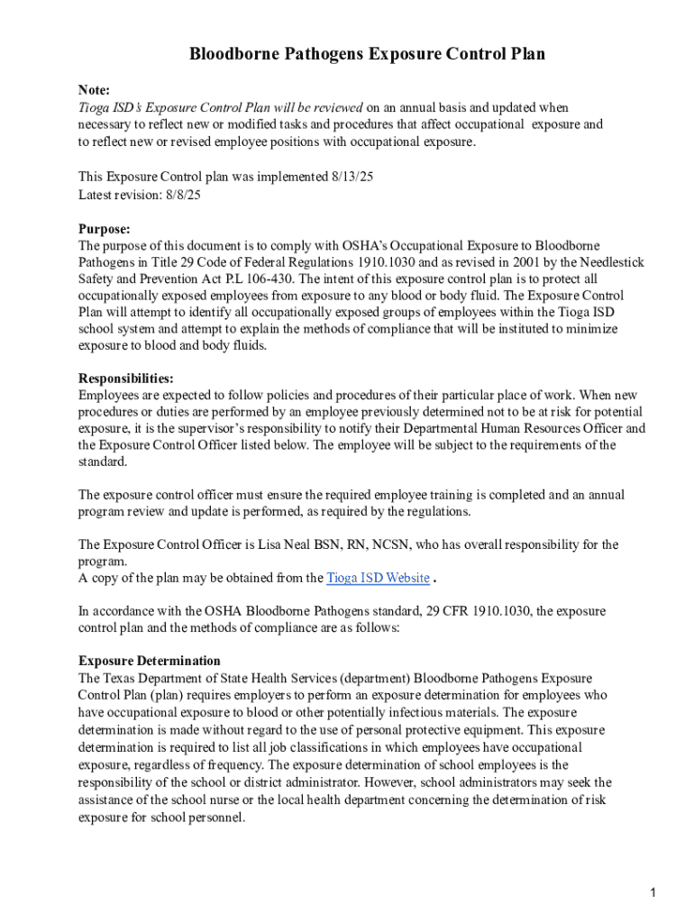 Get the free How Often Should Exposure Control Plans Be Reviewed and ...