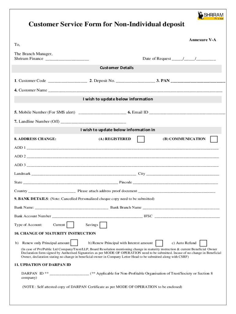 Get the free Customer Service Form for Non-Individual deposit