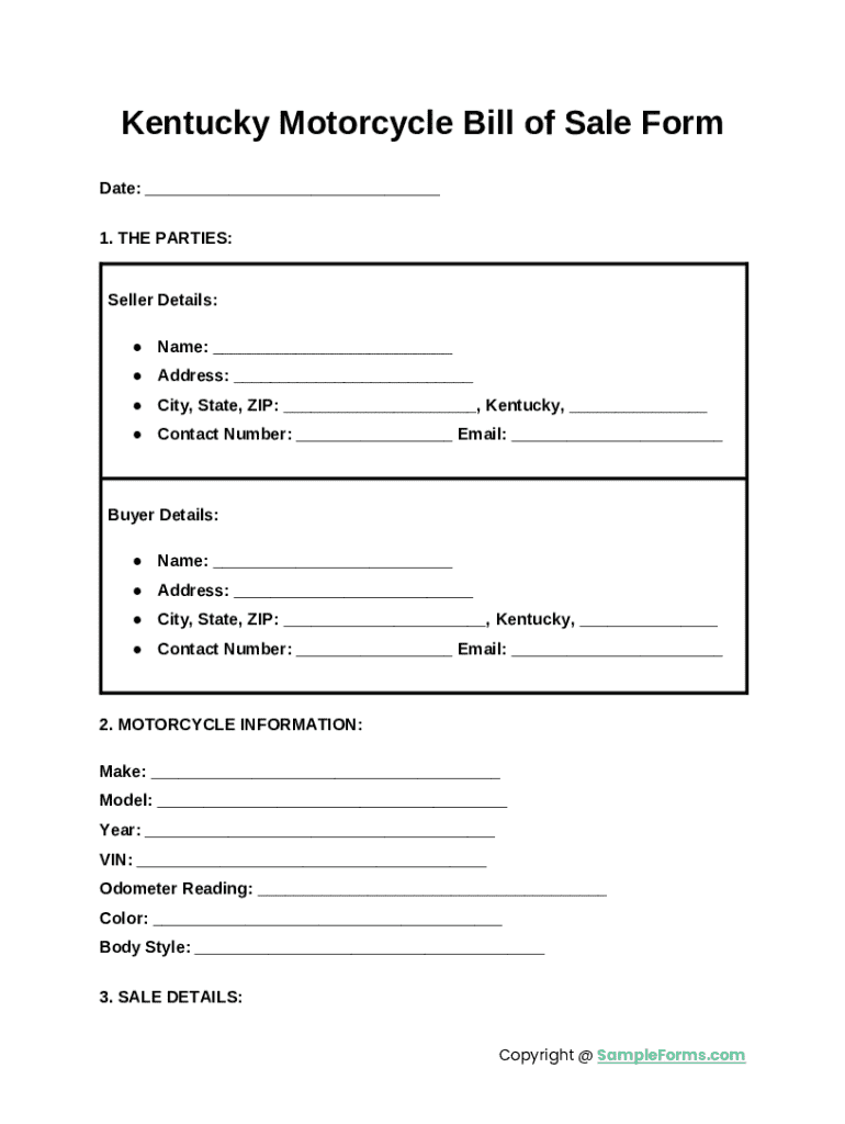 Kentucky Motor Vehicle Bill of Sale - es template instructions