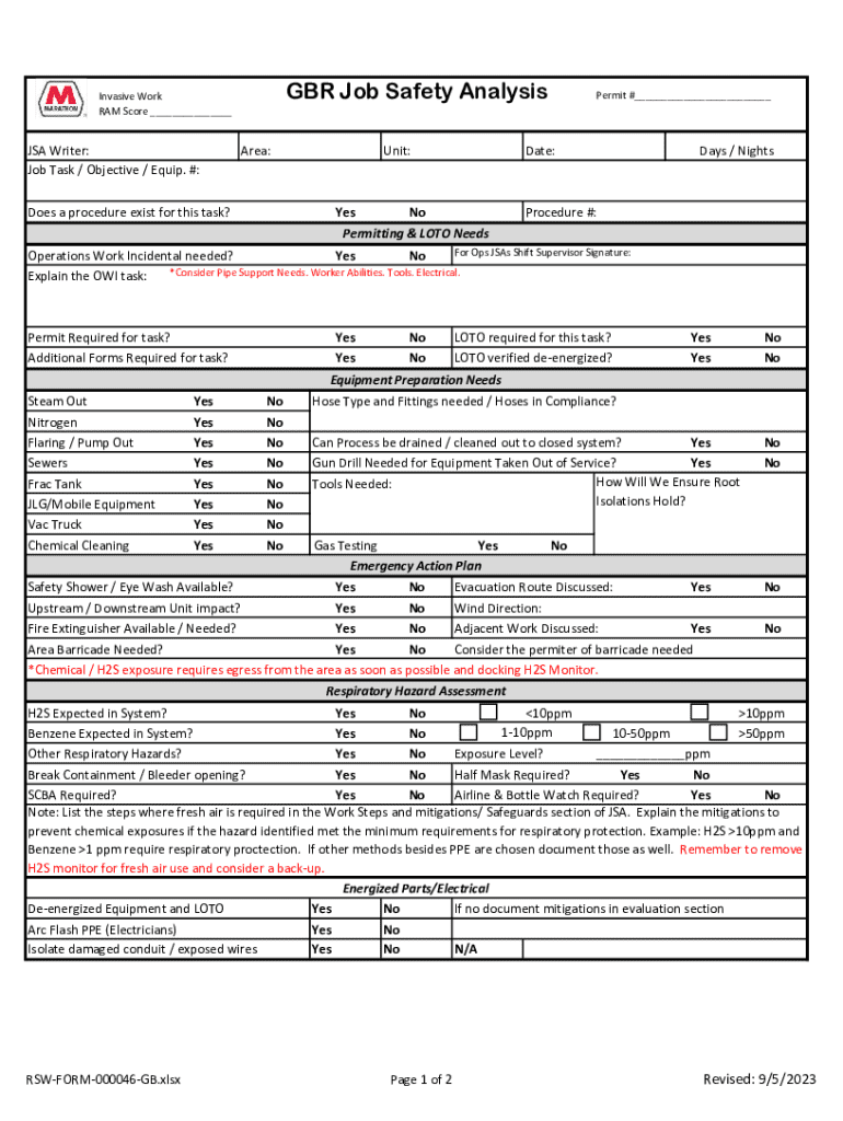 GBR Job Safety Analysis Form: A Comprehensive Guide