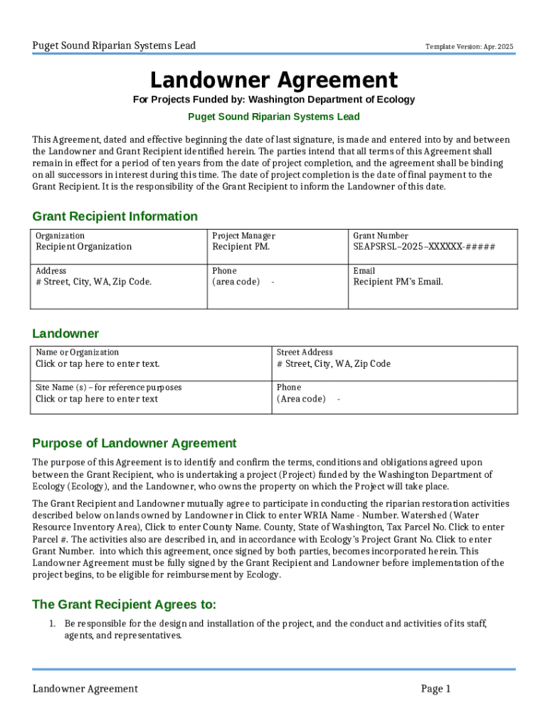 When accessing the Puget Sound riparian grant form, applicants will find several fields that need to be filled out comprehensively. The personal information section is fundamental, requiring details about the organization, project leaders, and contact information. This section sets the stage for identification and communication throughout the grant cycle.
