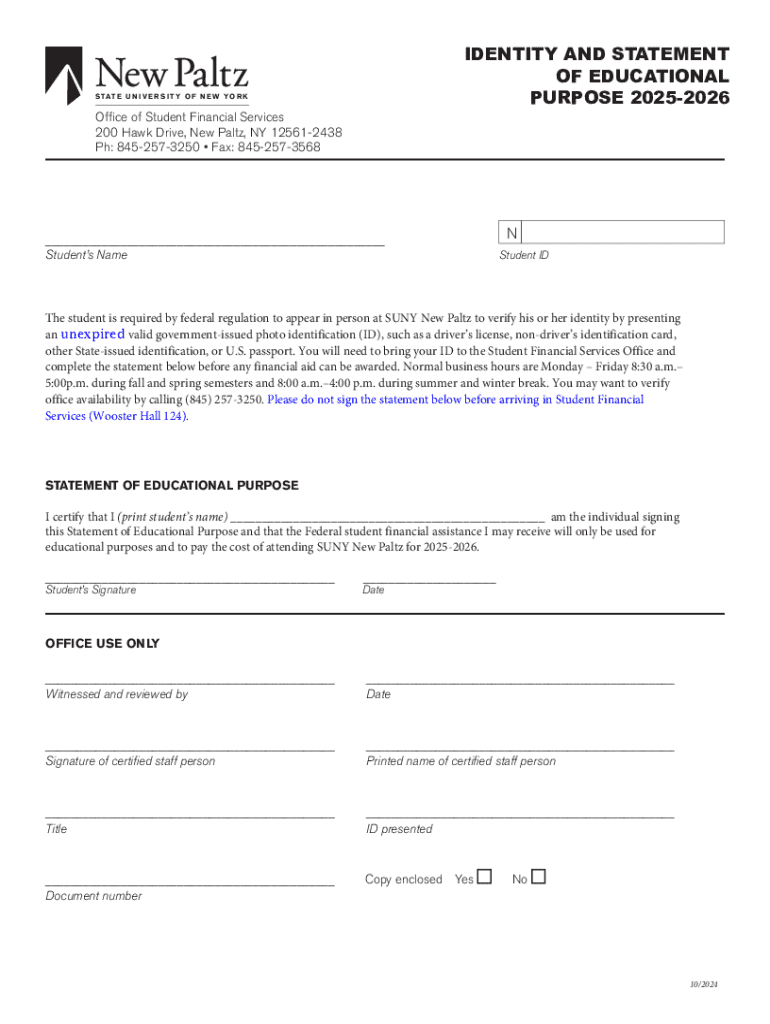 Get the free 2025-2026 Identity and Statement of Educational Purpose ( ...