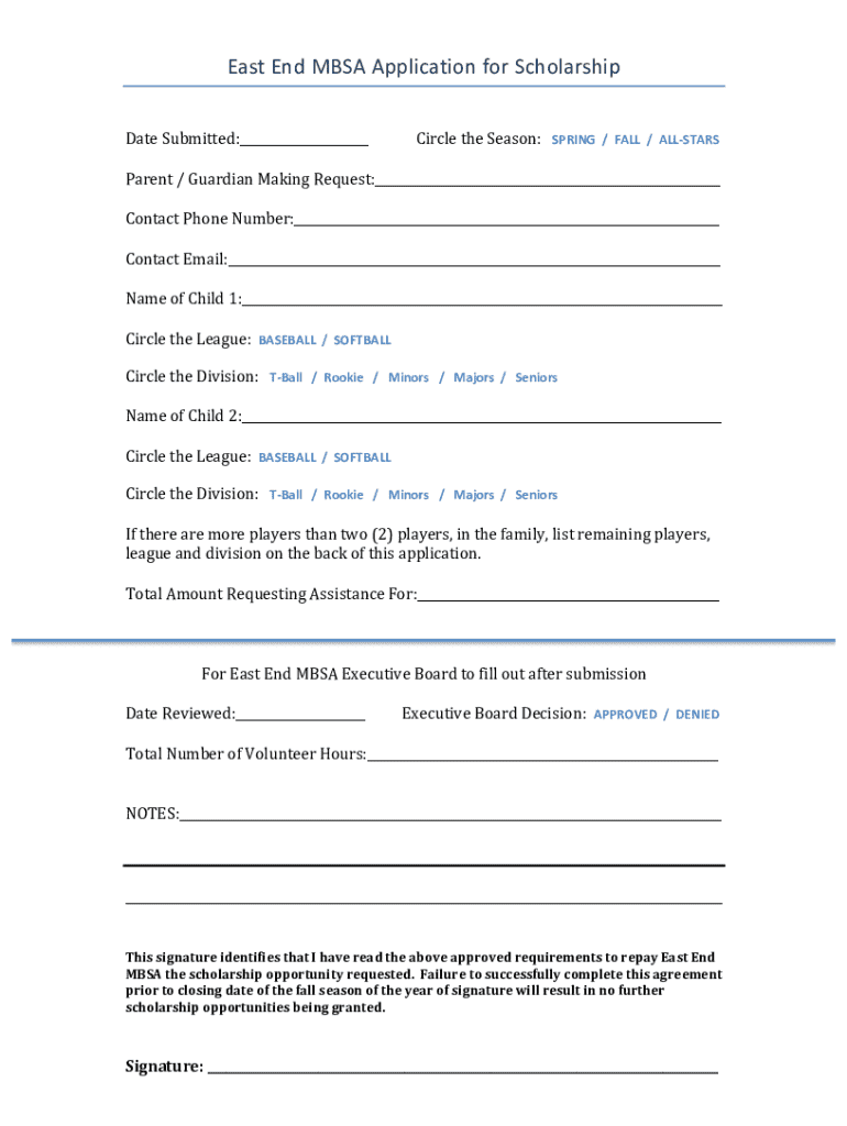 The East End MBSA sponsorship form is a critical tool for allowing community members and businesses to support local youth baseball initiatives. This form enables sponsors to contribute to the development of children in the East End, fostering a sense of community and teamwork. By engaging with this sponsorship opportunity, sponsors can make a tangible impact on the lives of young athletes and help maintain vital recreational facilities and programs.