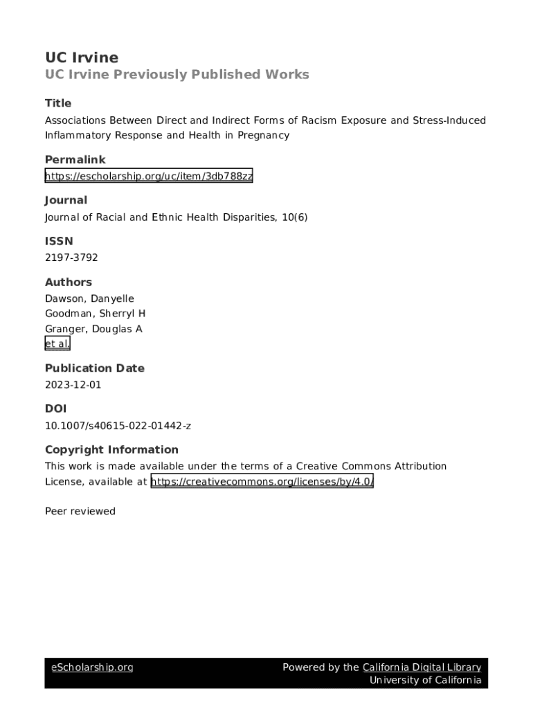 Get the free Associations Between Direct and Indirect Forms of Racism Exposure ...