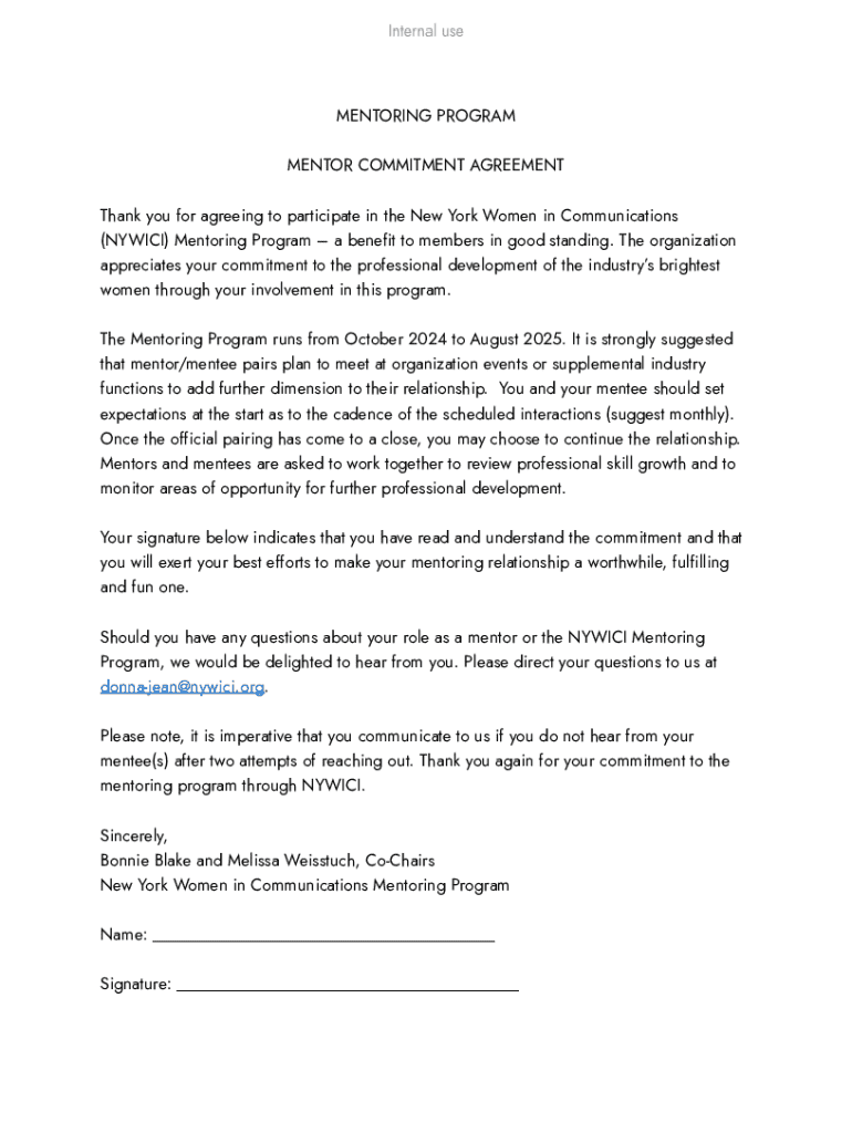 Get the free Mentor Commitment Agreement Form