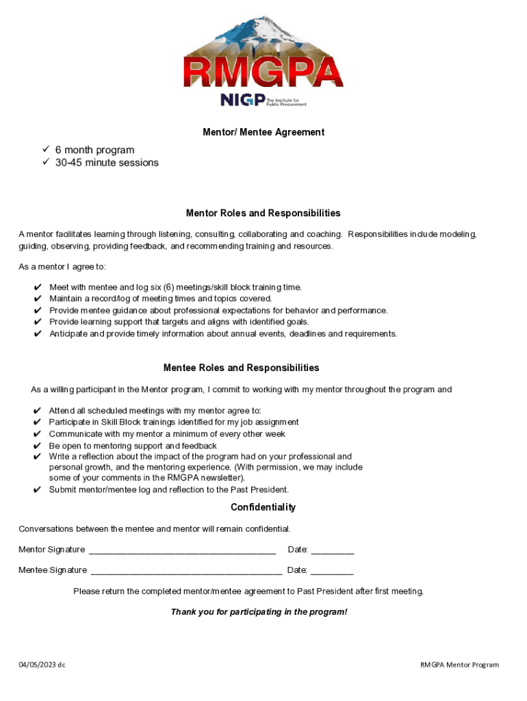 Get the free 2 Mentoring Agreement Templates To Get Started
